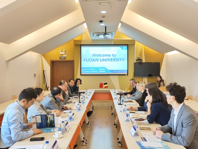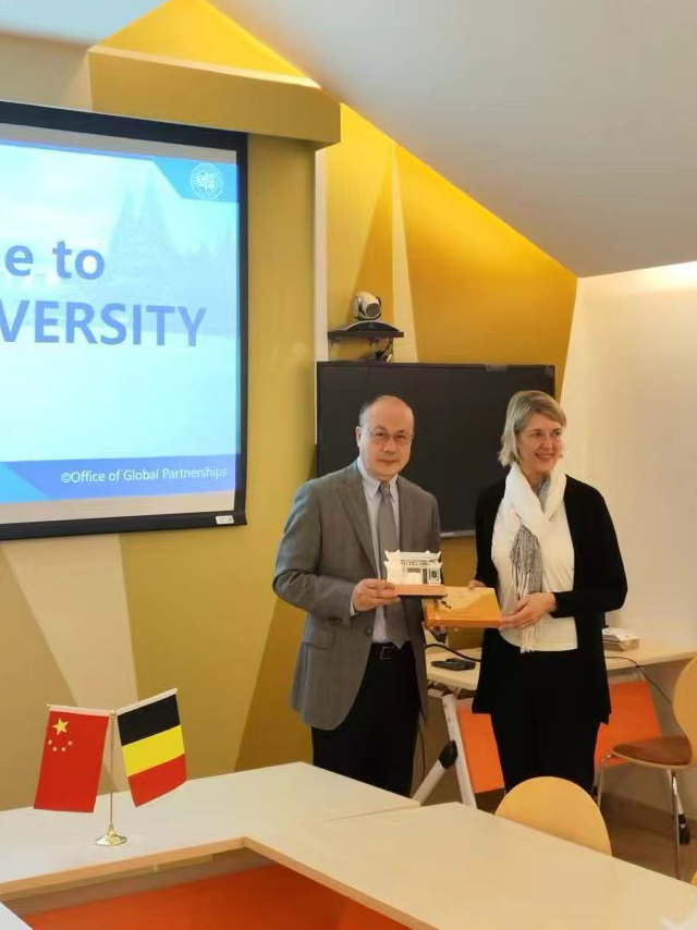 陈志敏与Vanderkerken副校长分别介绍了两校概况、英文学位项目与国际合作成果等,并提出希望在优势学科加强师生交流、持续深化合作。