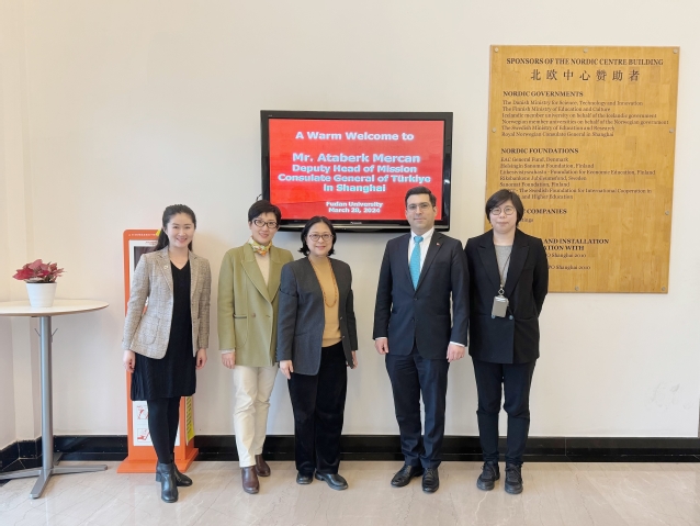3月28日下午,土耳其共和国驻上海总领事馆副馆长Ataberk Mercan(艾贝克)先生来访3200威尼斯vip,会见国际合作与交流处处长卢丽安、外国留学生工作处综合办公室主任杨俐等人。