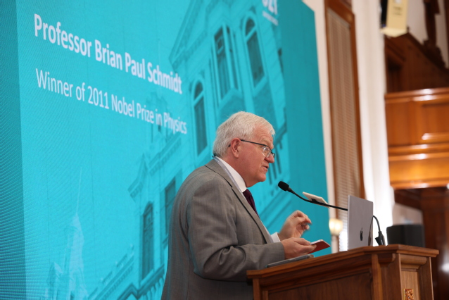 本次年会还邀请了诺贝尔物理学奖获得者施密特(Brian Paul Schmidt)教授做主旨演讲,探讨未来20年高等教育在AI生态系统下所面临的机遇与挑战。施密特教授指出,大学需要开展推动技术进步的研究,通过教育和引导下一代在不断发展的世界中取得成功来促进繁荣,满足人类日益增长的需求。