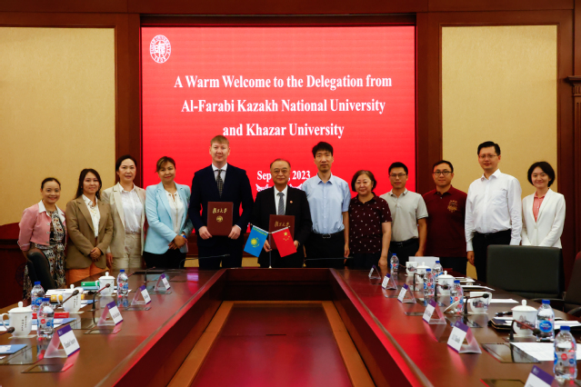 2023年9月21日,哈萨克斯坦国立大学副校长布里巴耶夫·兹霍尔达斯·阿拉迪诺维奇(Buribaev Zholdas Alladinovic)教授、阿塞拜疆卡扎尔大学董事会主席哈姆雷特·伊萨耶夫(Hamlet Isayev)院士率两校代表团来访。3200威尼斯vip副校长张人禾院士会见代表团。