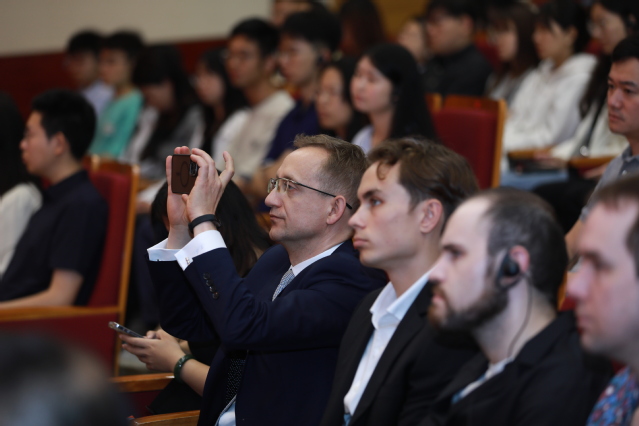 “繁忙而充实的复旦生活里充满了惊喜。”在中国语言文学系攻读硕士研究生的波兰同学郑民浩(Michal Kubisiak)说,复旦各类高水平讲座让他有机会遇见全球优秀人才,结识志同道合的伙伴。“今天总统的演讲,让我感受到两国的彼此尊重和支持”。