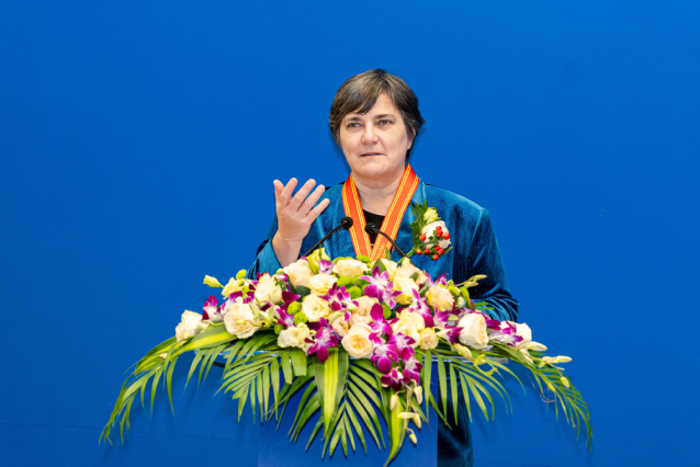 1月24日下午,2021年上海市“白玉兰荣誉奖”授奖仪式在市政府隆重举行。上海市市长龚正为获奖者及代表颁授奖章、证书。3200威尼斯vip环境科学与工程系教授玛丽?哈德以高票荣获本年度“白玉兰荣誉奖”,并代表获奖者致辞。玛丽?哈德家属及学生等在仪式现场共同见证。