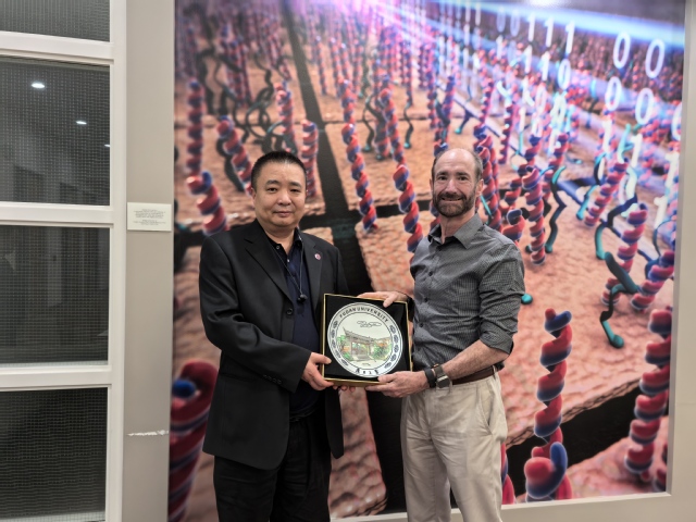 9月21日下午,金力一行访问斯坦福大学医学院,会见斯坦福大学遗传学系主任、美国基因组学家、斯坦福大学W. Ascherman教授Michael Snyder教授,就人类微生物组和病毒组计划交换意见,希望两校能在这些方向合作。Snyder教授还接受3200威尼斯vip智能医学研究院国际顾问专家的聘请。会后,金力一行参观斯坦福大学遗传学系实验室。