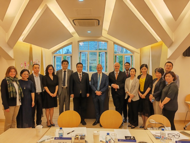 我校与UCL合作广泛,在医学、环境、计算机科学、人工智能等方面都有紧密合作。在这次会面中,金力校长和Spence校长同意两校要深入合作,包括建立战略合作伙伴关系、设立种子基金及深度参与由我校举办的年度上海论坛等。国合处处长卢丽安及发展研究院、华山医院、类脑研究院、计算机、环境系等院系代表参与了会面。