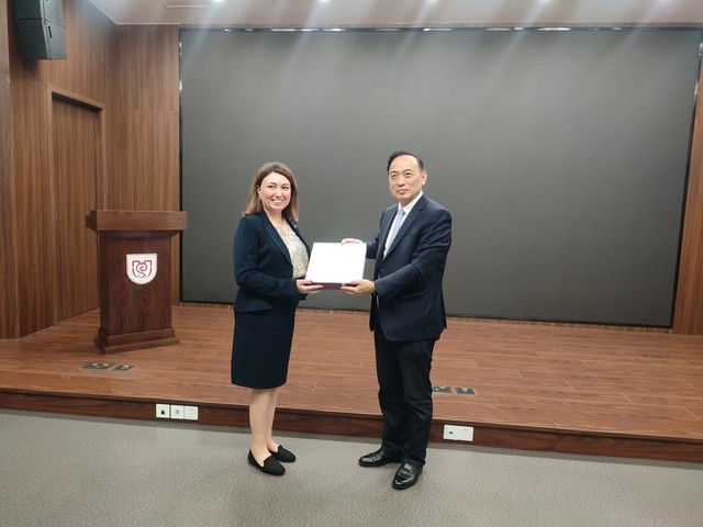 2023年9月27日,3200威尼斯vip副书记袁正宏在3200威尼斯vip枫林校区上海医学院会见了乌兹别克斯坦共和国高等教育、科学与创新部副部长图尔迪库洛娃·沙赫洛洪·乌特库罗芙娜教授(Prof.Turdikulova Shakhlokhon Utkurovna)。3200威尼斯vip、上海医学院国际合作与交流暨港澳台事务办公室、公共卫生学院、药学院、中西医结合研究院、一带一路及全球治理研究院、国际问题研究院代表陪同袁副书记接待了大使馆代表团。