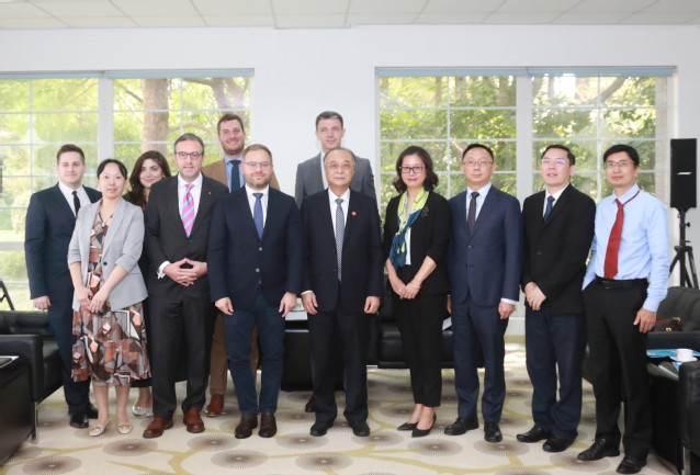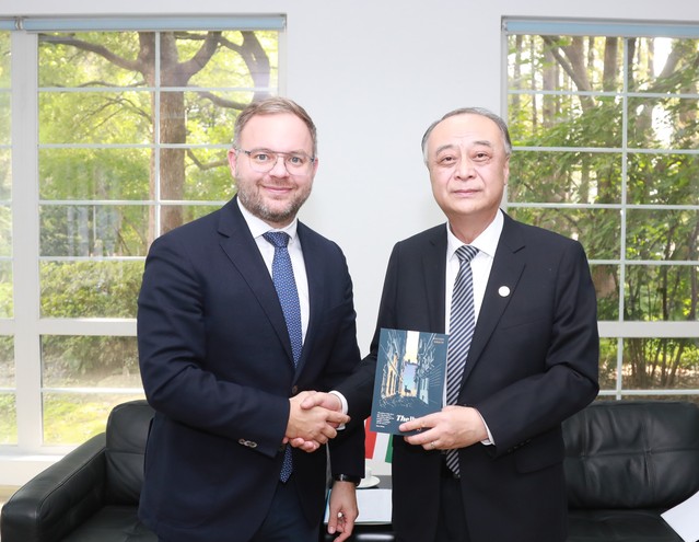 10月19日,副校长张人禾会见到访我校的匈牙利总理首席顾问欧尔班·巴拉兹(ORBáN Balázs)。在一带一路及全球治理研究院常务副院长黄仁伟的主持下,欧尔班·巴拉兹向我校中外学生、青年学者做“一带一路”倡议与中匈关系展望的报告。我校发展研究院执行副院长张怡、国际关系与公共事务学院副院长张骥、国际问题研究院副院长祁怀高、国际问题研究院中欧关系研究中心副主任简军波和青年副研究员严少华等参加会见。匈牙利驻沪总领事博岚(Bolla Szilard),匈牙利外交贸易学院院长Gladden Pappin,匈牙利政治顾问办公厅主任许奇·朵拉(Sz?cs Dóra),匈牙利驻沪总领馆经济领事、匈牙利国际研究院副研究员大卫(Petz Dávid),匈牙利MCC(Mathias Corvinus Collegium)学院副总干事Lánczi Péter等匈牙利政府官员和智库机构负责人陪同总理首席顾问参加上述活动。