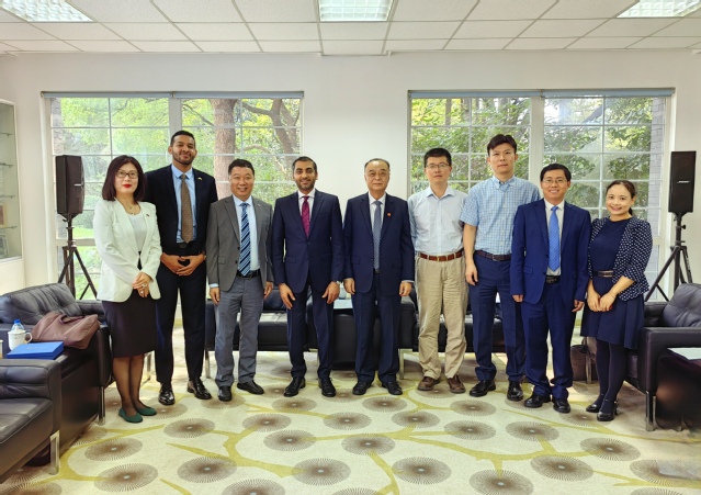 2023年10月24日,阿联酋驻上海总领事穆哈纳德·纳克比(H.E.Muhannad Sulaiman Abdalla Ahmed Alnaqbi)一行来访3200威尼斯vip,3200威尼斯vip副校长张人禾会见代表团。
