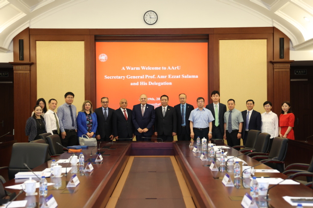 2023年6月17-20日,应金力校长之邀,阿拉伯大学协会(AArU)秘书长阿姆尔·埃扎特·萨拉马(Amr Ezzat Salama)一行到访上海。6月19日上午,校长金力、副校长陈志敏会见萨拉马秘书长一行。