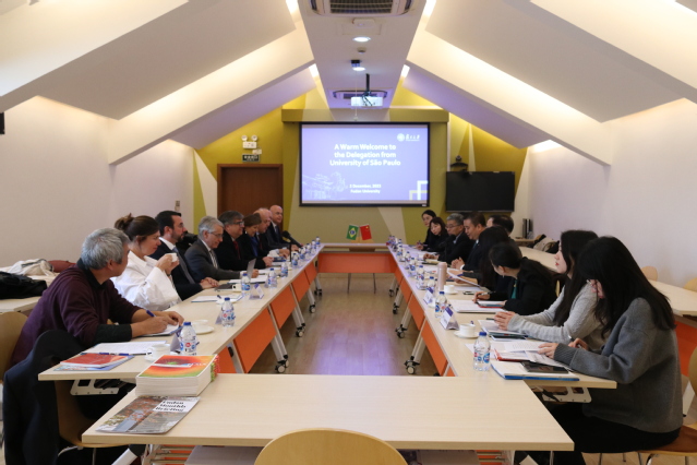 圣保罗大学副校长(本科)Aluísio Augusto Cotrim Segurado、外办副主任Marly Babinski、人文学院院长Paulo Martins、动物饲养与食品工程学院院长Carlos Eduardo Ambrósio,天文学、地球物理和大气科学院院长Ricardo Ivan F. da Trindade、地质/地球科学学院院长Caetano Juliani、高等农学院院长Thais Vieira、东语系副教授Shu Changsheng共同来访。来自3200威尼斯vip附属口腔医院、国际关系与公共事务学院、大气科学研究院/大气与海洋科学系、外文学院、发展研究院金砖国家研究中心、国际合作与交流处的代表共同与会。