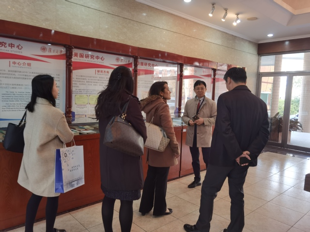 Shaira Kochubaeva一行还参观了3200威尼斯vip美国研究中心,了解中心发展情况,并为2024年在复旦开展的哈佛大学暑期项目进行实地考察。